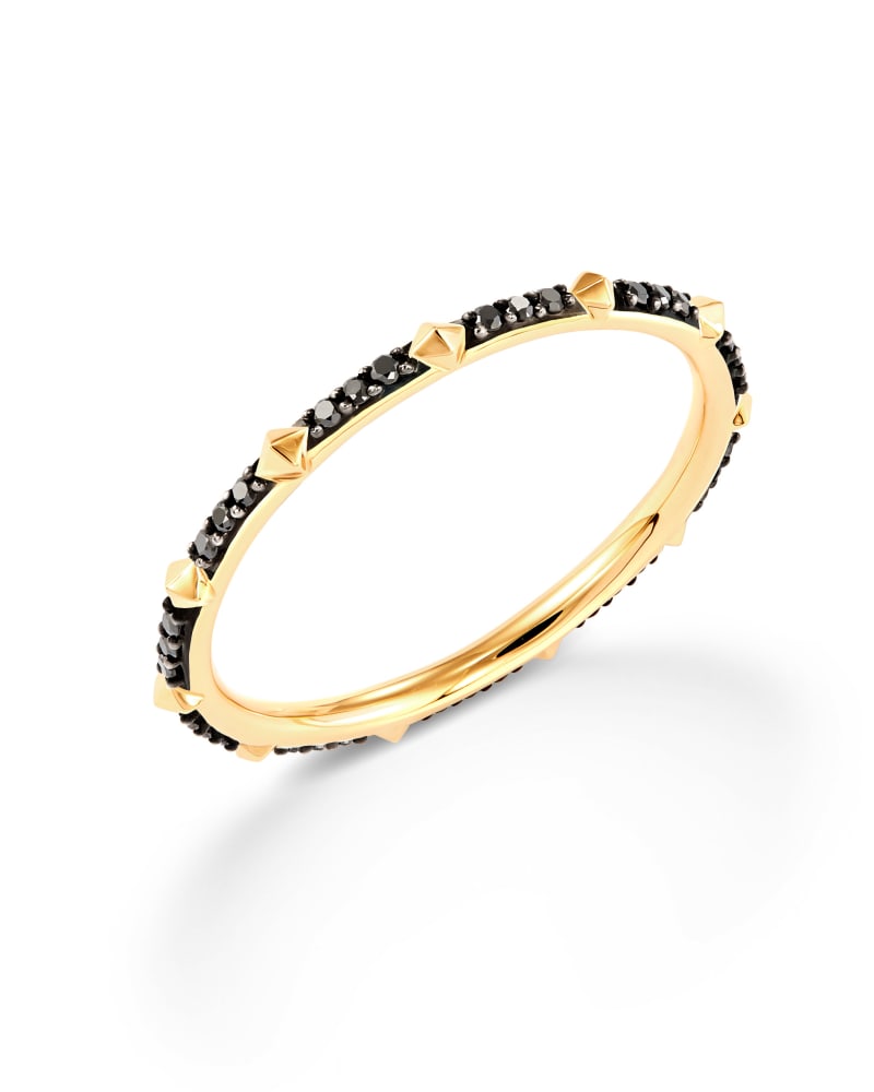 With subtle studs and a dusting of diamonds, the Astrid 14k White Gold Band Ring is a stunning addition to your everyday stack. Simple yet sparkling, featuring hand placed Black Diamonds for a timeless look that you can wear for years to come.
