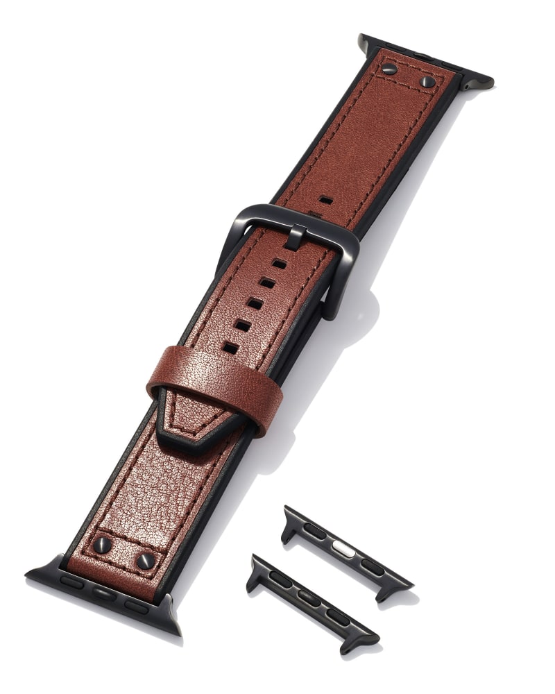 Made exclusively for your Apple Watch®, the Cade Leather Watch Band in Cognac is a natural complement to your modern timepiece. Featuring Black Stainless Steel accents and genuine leather, this long-lasting band pairs effortlessly with your day-to-day look. To switch up your bands, simply press down on the easy release mechanism and then align each new band to the pinholes on either side of the watch.